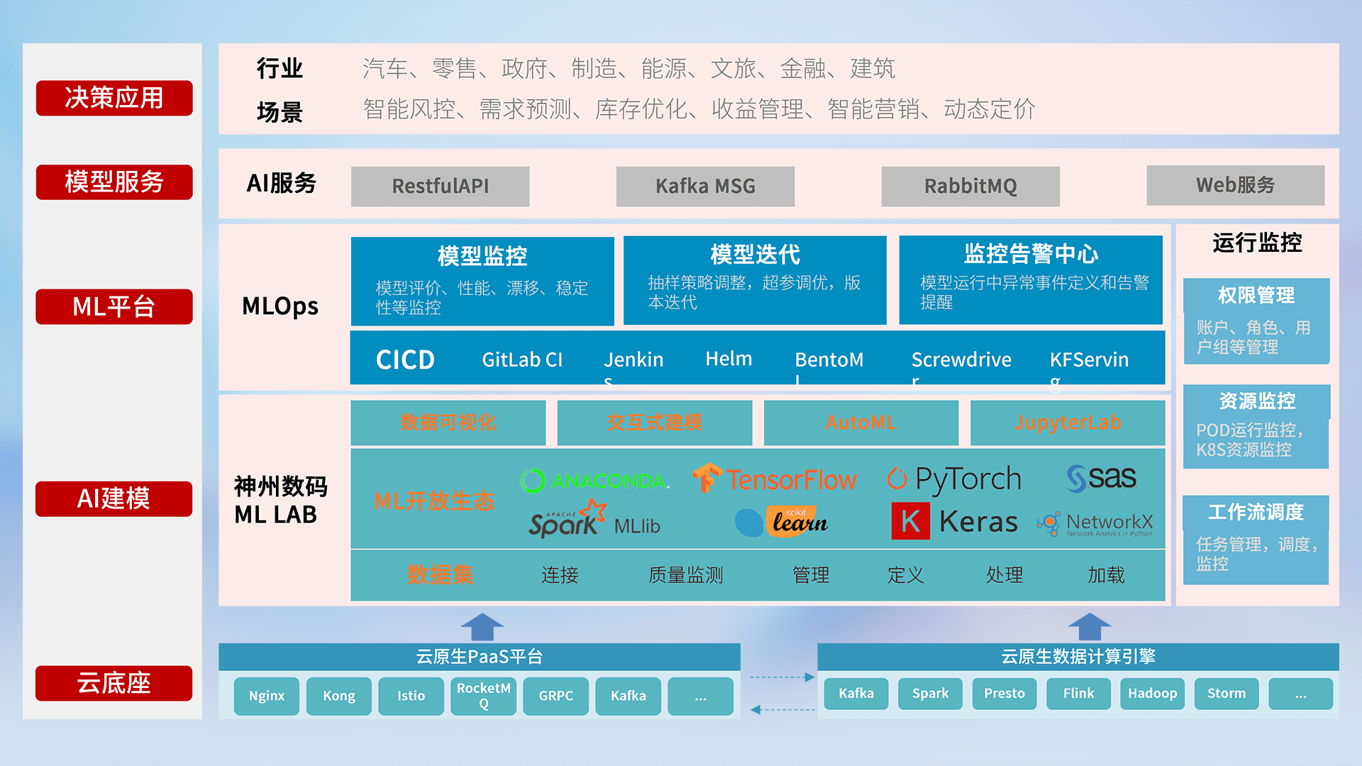数据+模型双引擎驱动,,面向智能服务场景,,,,快速灵活利用AI技术,,支持业务决策,,助力企业智能化转型破局。。。
